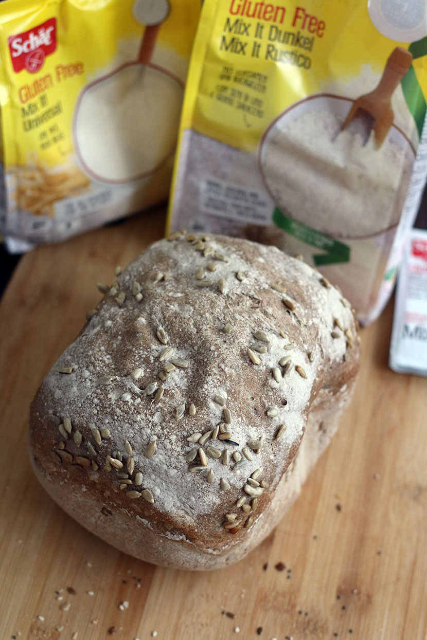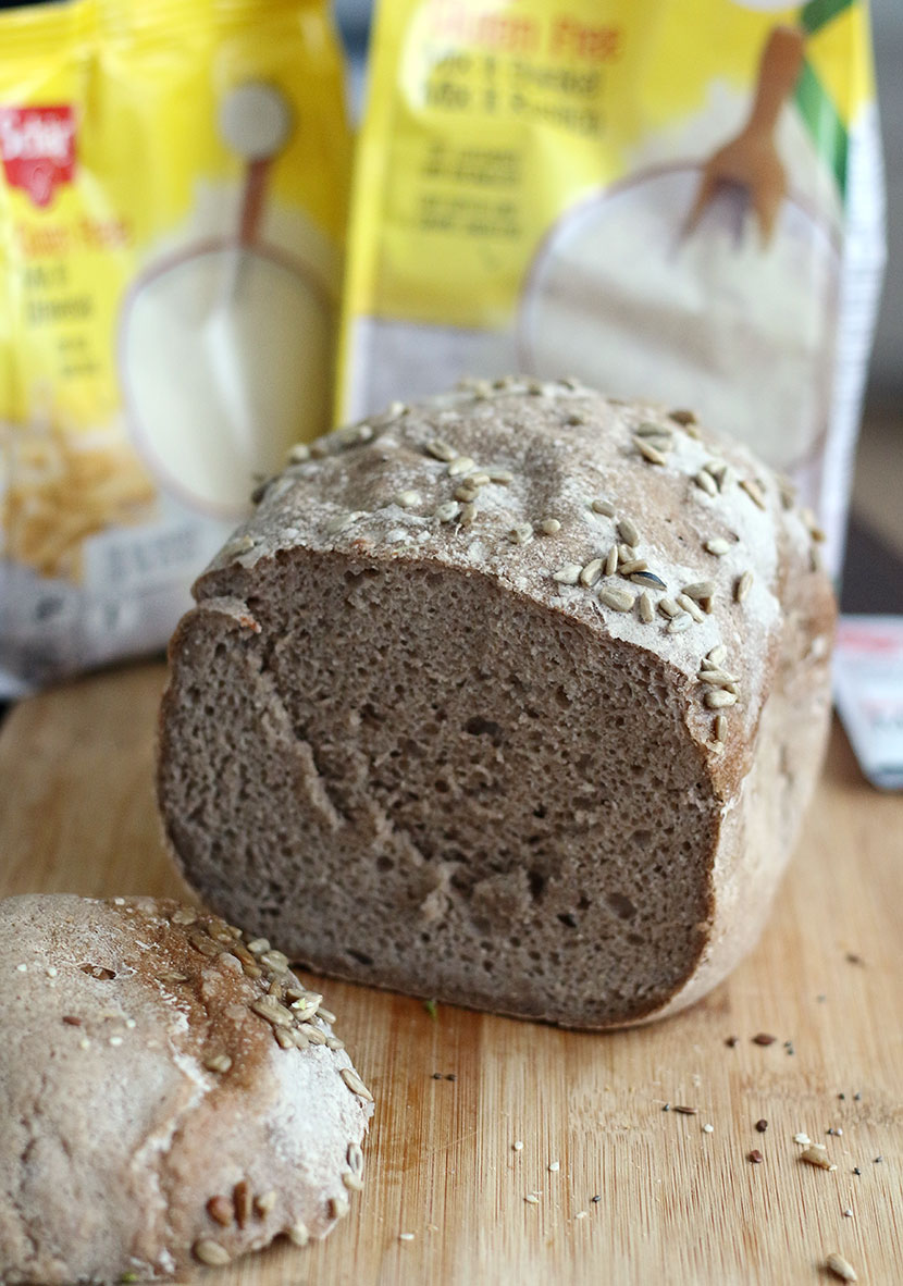 Continuam seria de retete de paine fara gluten la masina de paine cu o alta reteta de paine fara gluten mixta. Pentru aceasta reteta am folosit masina de paine Tefal Pain & Delices care are trei programe speciale pentru produse fara gluten. Mai mult, cartea de retete a masinii contine retete de paine fara gluten la care a fost folosita faina Schar, asadar riscul ca painea sa nu va iasa este minim.