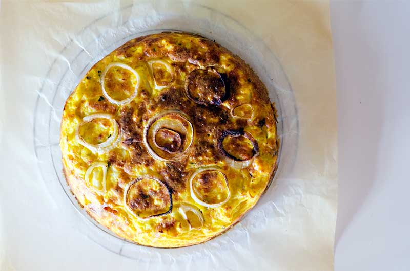 Aceasta tarta cu branza si topping crocant din fulg de porumb, poate fi servita ca aperitiv sau ca fel principal, daca meniul este unul vegetarian.
