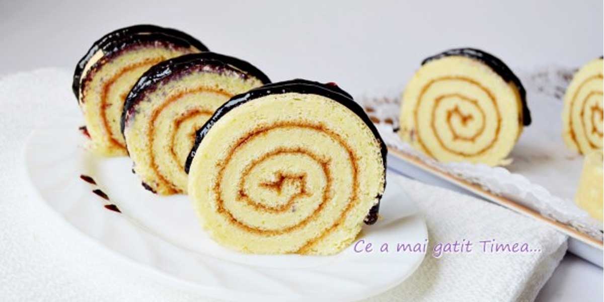 Daca doriti un desert fara gluten, aromat si aerat, incercati aceasta rulada cu gem si cu topping de cacao. Este delicioasa!