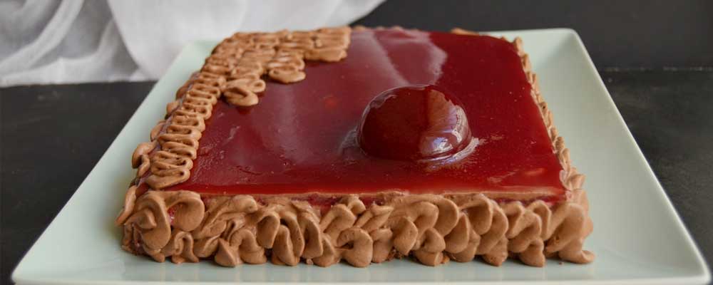 Optati pentru un desert fara gluten, dulce-acrisor, preparand acest tort cu visine si crema de ciocolata. Arata minunat si va fi cu siguranta pe placul oaspetilor.