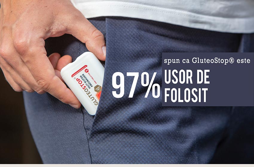 GluteoStop® este un supliment alimentar care ajută la descompunerea glutenului rezidual în cazul unei diete fără gluten. Conține enzima activă AN-PEP, testată clinic, ce acționează eficient asupra urmelor de gluten care pot apărea accidental în alimentație. Este ideal pentru persoanele care urmează o dietă strictă fără gluten, dar care vor să evite riscul contaminării accidentale.