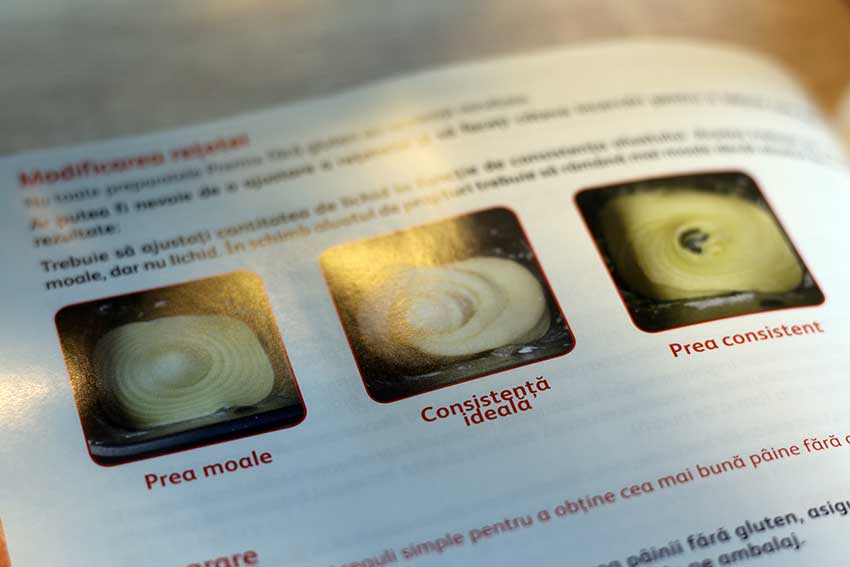 2. Folositi numai programele speciale pentru paine fara gluten. In cazul acestei masini de paine, programele sunt 1, 2 si 3.